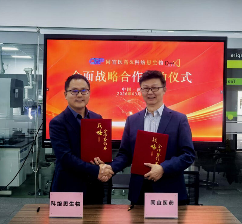 日前,同宜医药(苏州)有限公司与南京科络思生物科技有限公司在南京科络思生物总部签署全面战略合作协议。