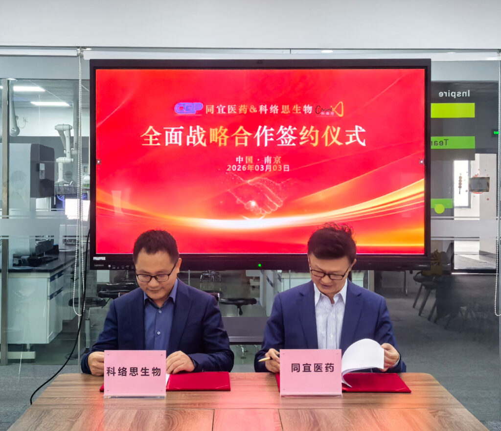 日前,同宜医药(苏州)有限公司(简称“同宜医药”)与南京科络思生物科技有限公司(简称“科络思生物”)在南京科络思生物总部签署全面战略合作协议。